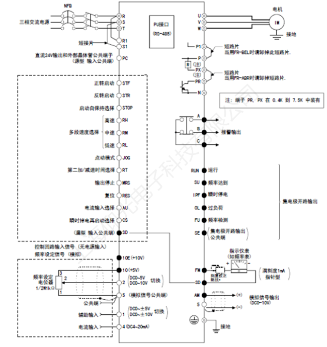 (2)对于E700系列变频器,遇到的常见故障有Fn故障,主要是风扇损坏引起的。的。但当出现报警时,变频器不会封锁输出。